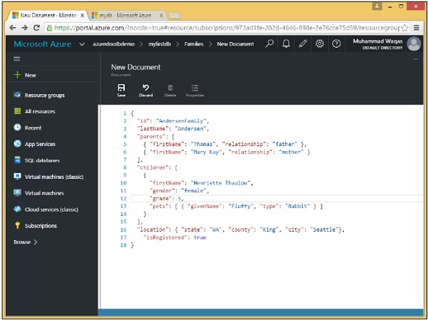 To use Microsoft Azure DocumentDB, you must create a DocumentDB account. In this chapter, we will create a DocumentDB account using Azure portal.