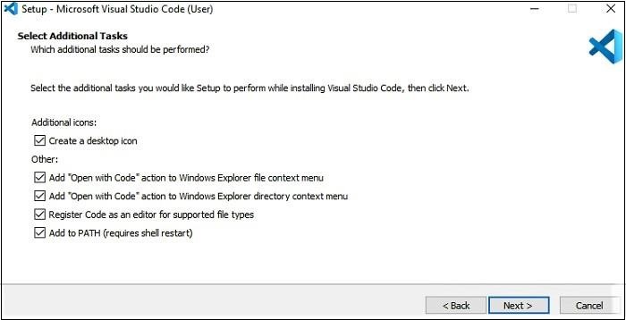 Installing the Visual Studio Code installer on Windows
